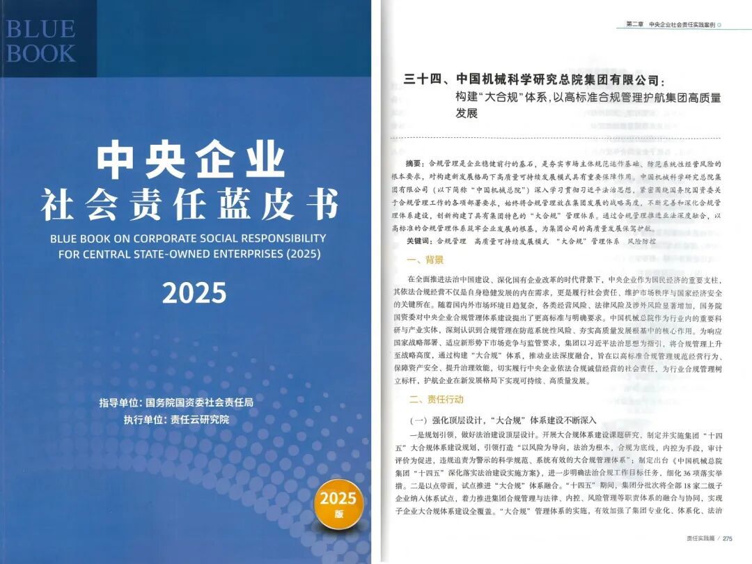 會上,《中央企業社會責任藍皮書(2025)》正式發布,集團“構建大合規體系,以高標準合規管理護航集團高質量發展”案例成功入選。